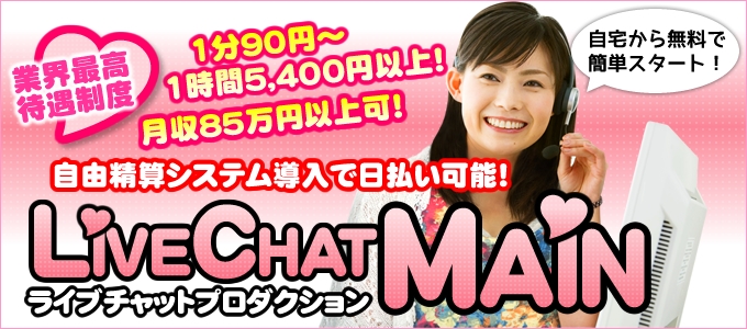 静岡のライブチャットプロダクション「ライブチャットメイン」では、チャットルームに出勤、在宅でのスマフォ又はPCでのアルバイトのお好きな方を選んで頂けます。